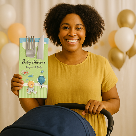 Make your baby shower party extra special with our customizable cutlery holders. The holders come with your choice of personalization, making them a unique addition to your table setting. Our holders are made of high-quality materials and come with premium napkins to complete the look.
